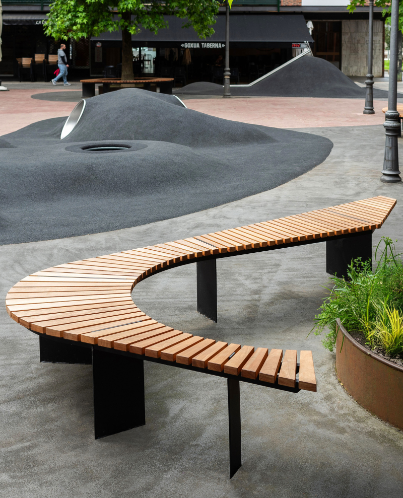 ✔ Solar Benches: Innovative seating equipped with solar panels, USB charging ports and lighting, combining functionality with eco-conscious design.